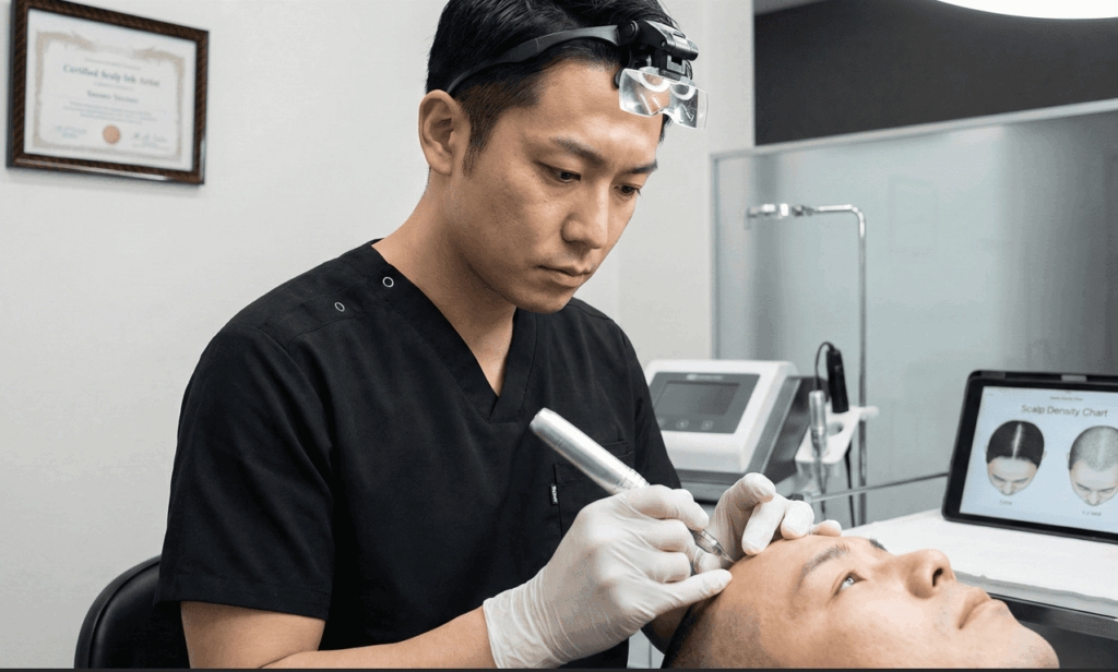 男性の進行した薄毛だけでなく、女性の分け目のボリュームアップや、円形脱毛症の痕、植毛手術後の傷跡カバーなど、幅広いニーズに対応可能です。「タトゥー」という言葉に抵抗を感じる方もいるかもしれませんが、スカルプインクは医療現場の知見を活かし、皮膚へのダメージを最小限に抑えた手法を採用しています。痛みを極限まで軽減し、麻酔なしでもリラックスして受けられるこの技術は、忙しい現代人にとって最も効率的でリスクの低いコンプレックス解消法と言えるでしょう。