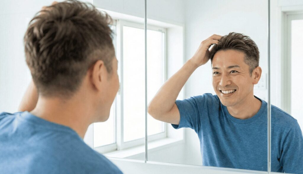 「3回目でほぼ完璧な密度になりました。将来的に白髪が増えた時にどう見えるかのリスク説明を受け、納得の上で実施しました。」(40代・男性)